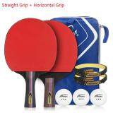 2022- 2pcs/lot Table Tennis Bat Racket Long Short Handle Ping Pong Paddle Racket Set With Bag 3 Balls Double Face Pimples In