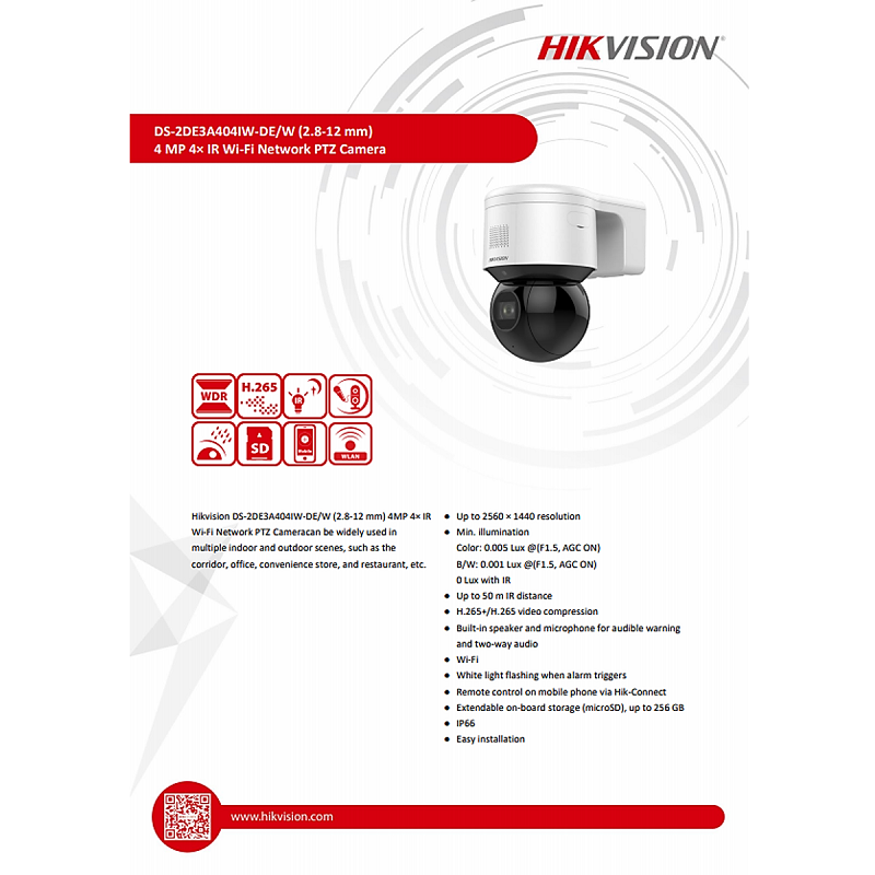 Hikvision Wifi DS-2DE3A404IW-DE/W (2.8-12 mm) 4MP 4X Optical Zoom IR WiFi Network PTZ IP Camera