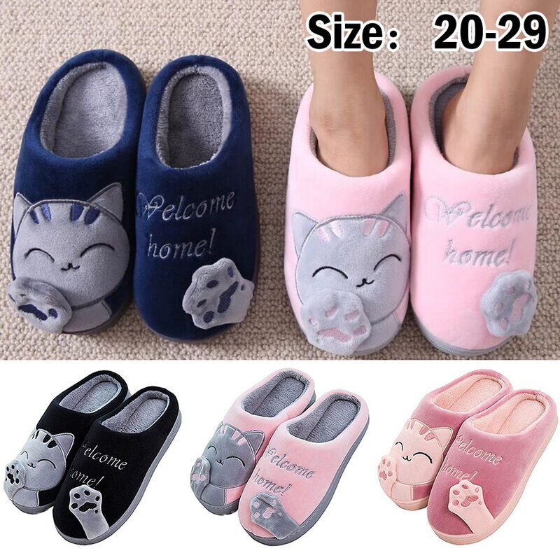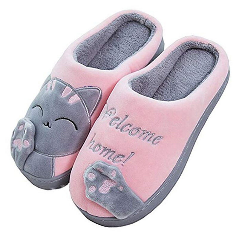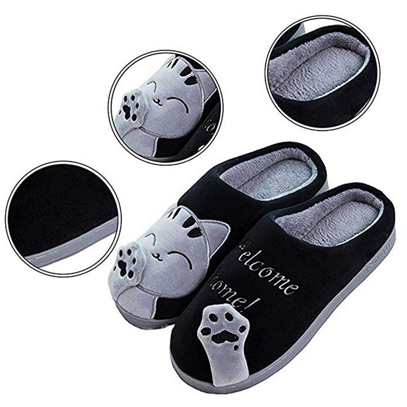 Couple Winter Home Slippers Cute Cartoon Cat Non-Slip Warm Slippers Bedroom Indoor Slipper Decor Lovely Cat