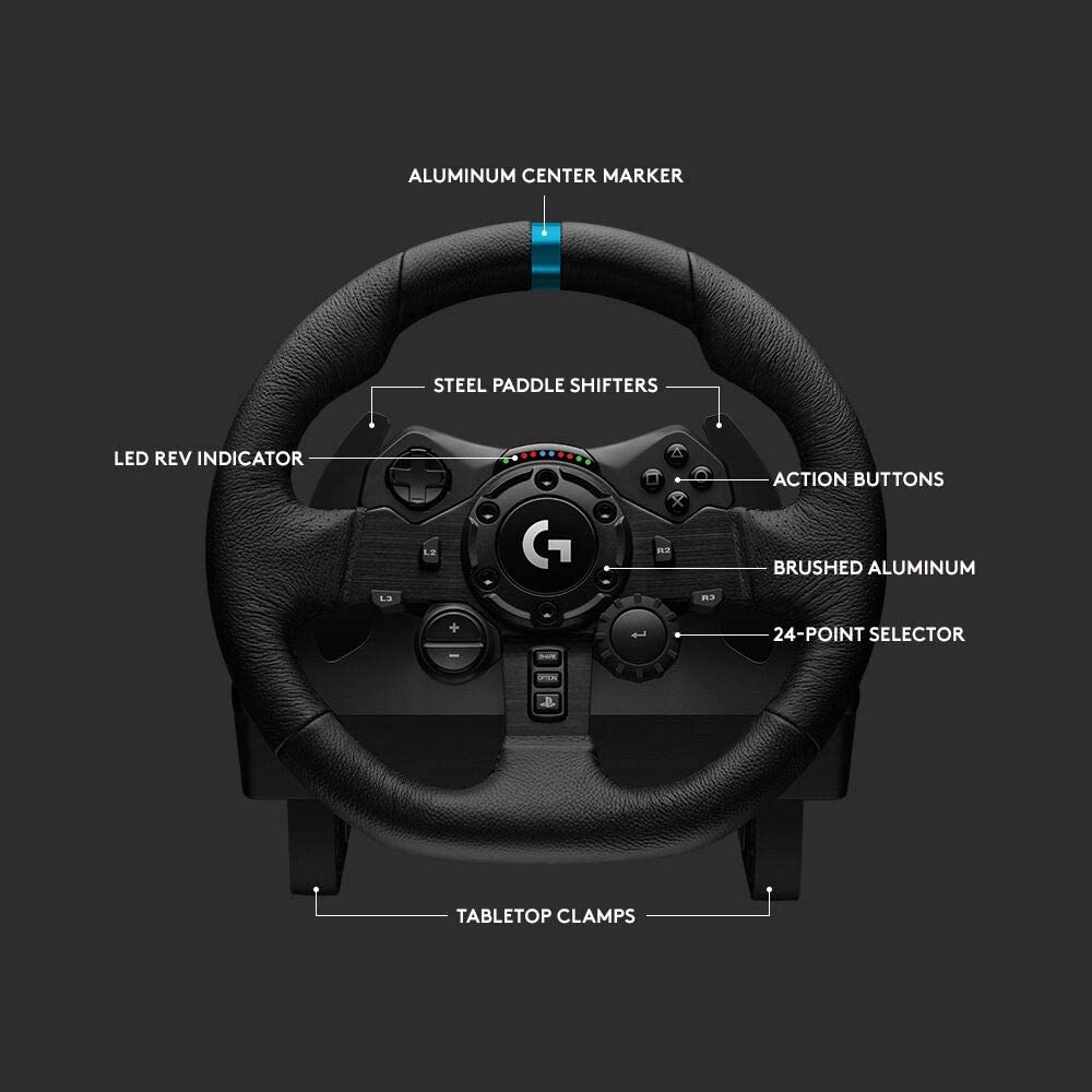 Logitech G923 Racing Wheel and Pedals for Playstation PS4 and PC, TRUEFORCE 1000 Hz Force Feedback, Responsive Driving Design, Dual Clutch Launch Control, Genuine Leather Wheel Cover [24 hours deliver