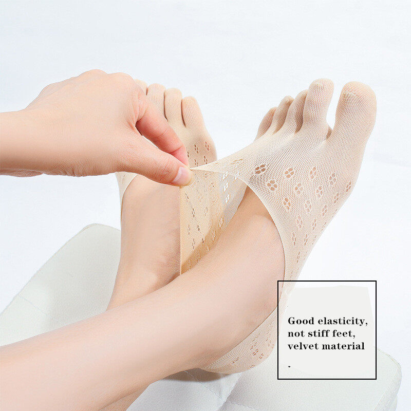 5 Pairs Summer Five Finger Socks Women's Silk Thin Yoga Sock Woman Solid color Velvet Mesh Shallow Mouth Boat Socks Ladies Anti-dropping Running Invisible Five Toes Socks