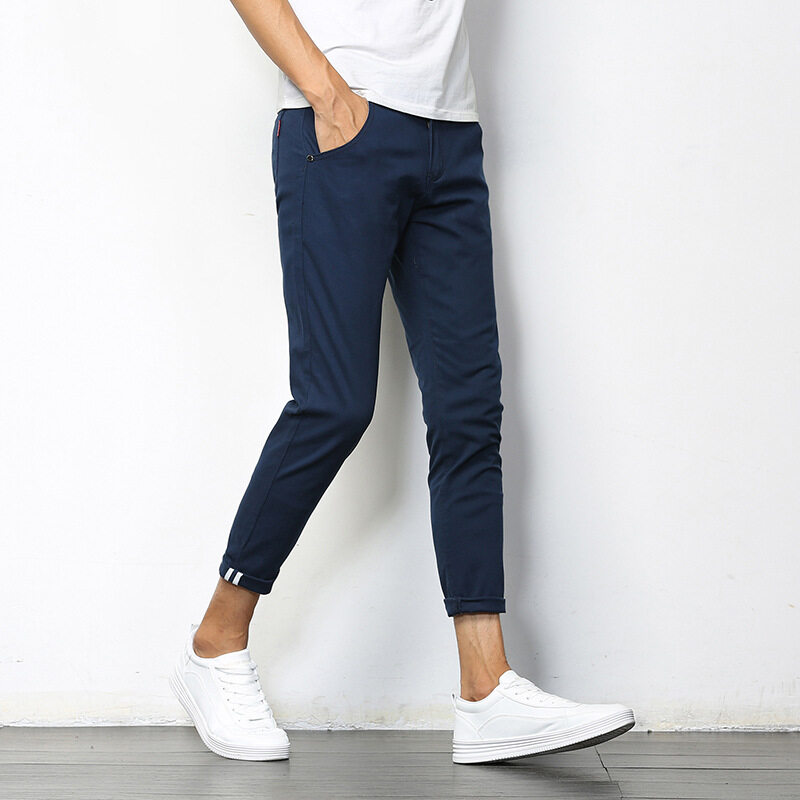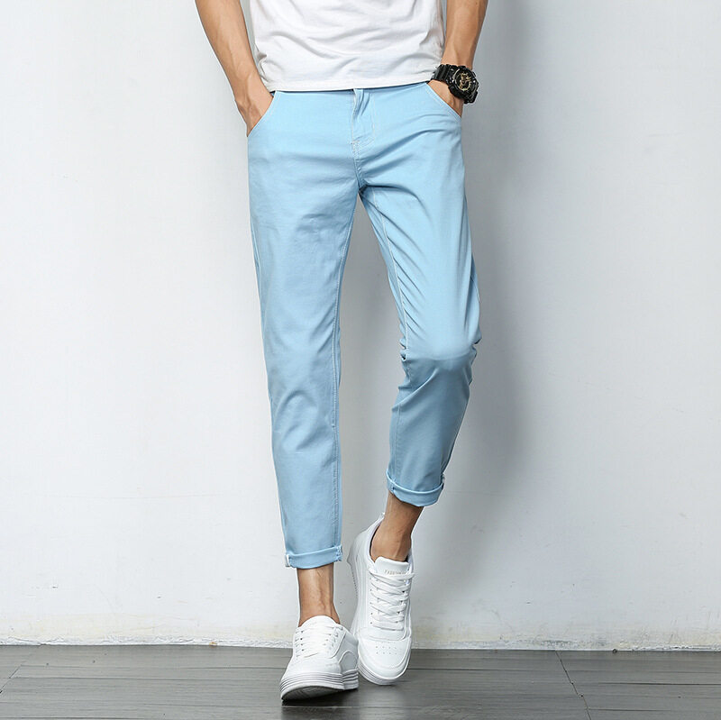 MARK BEL Summer New Men's Ankle Casual Pants Korean Version of Khaki/ Black/ Gray/ Light Blue/ Orange/ Blue Slim Pants