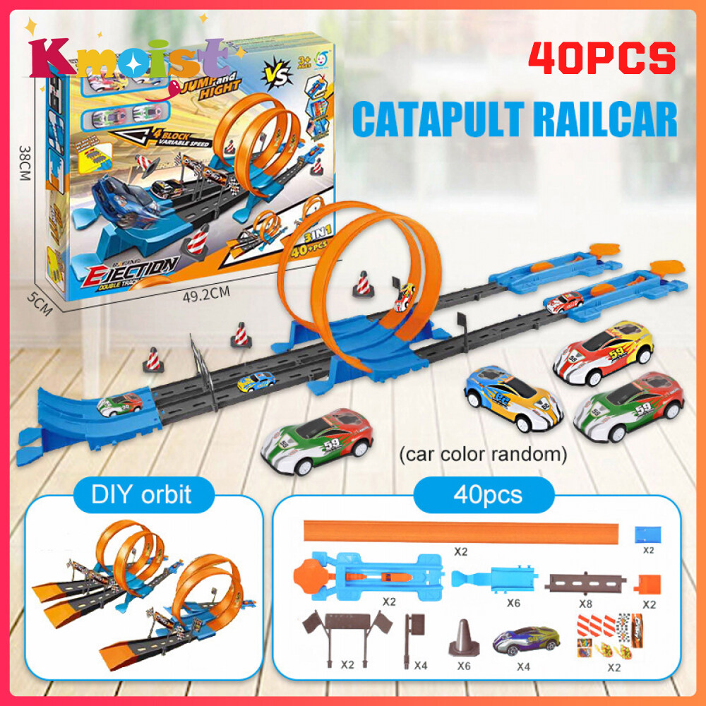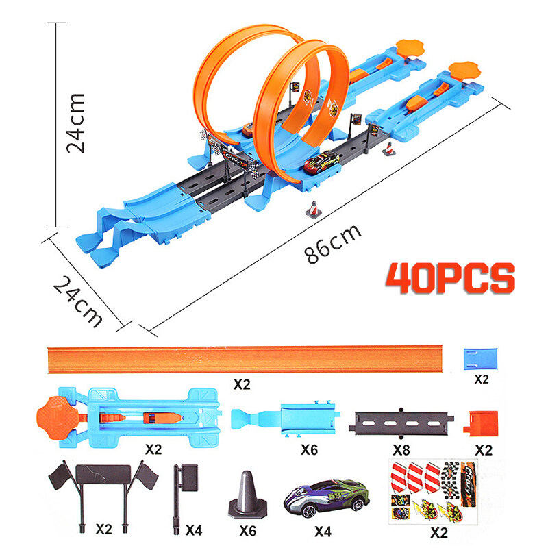 Kmoist 40pcs Hot Wheels Race Track Car Set Hotwheel Thomas Train Model Toys Kids Catapult Rail Racing Cars DIY Assembled Railway Kits Educational Birthday Gift for Boys Children Toy