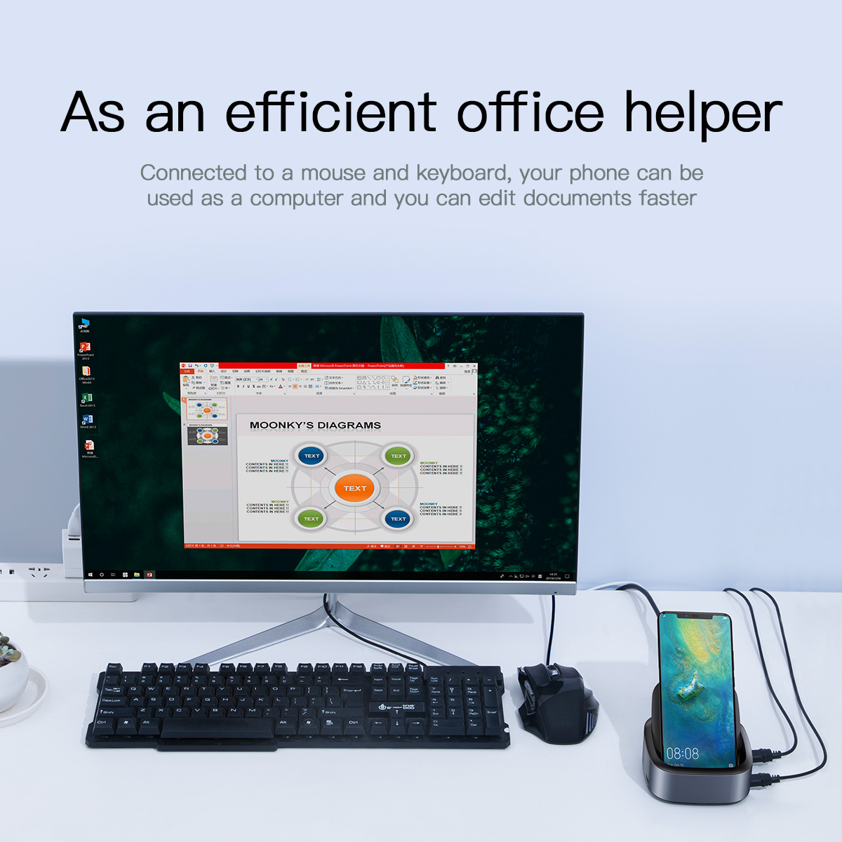 • Efficient office helper , turn your phone into a computer