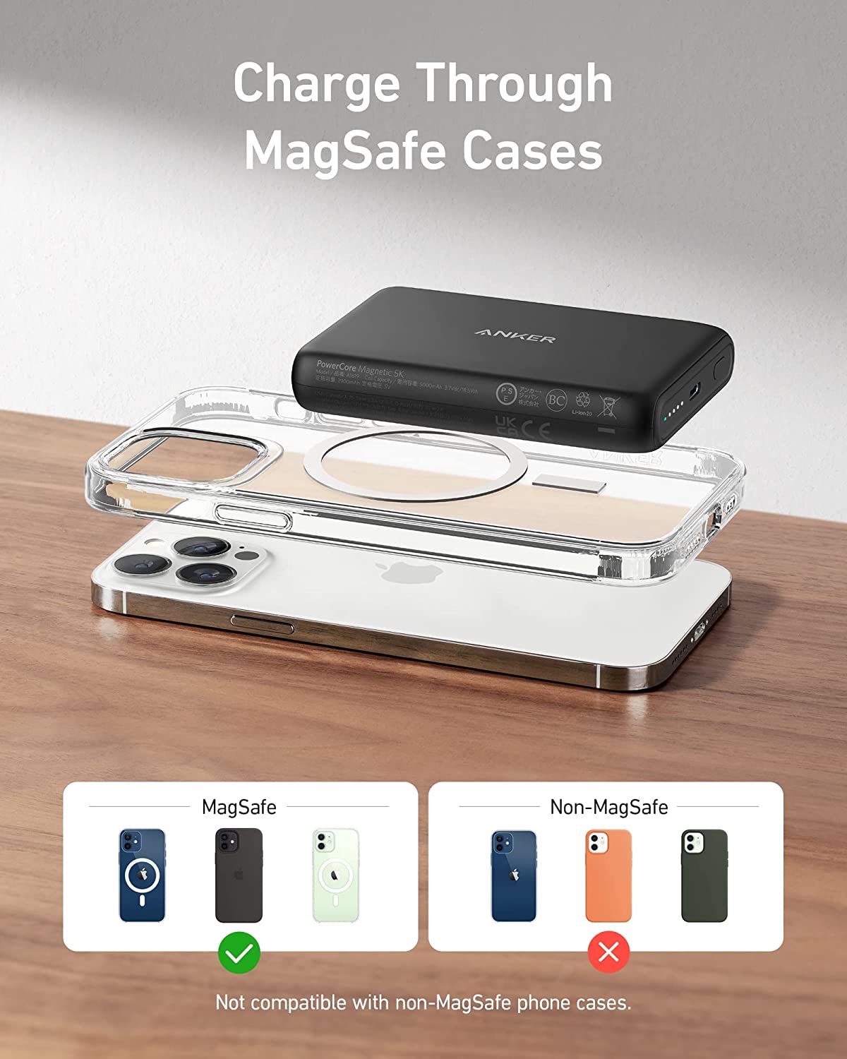 Anker PowerCore Magnetic 5000mah Magsafe Powerbank Magnetic 5k Wireless Portable Charger, 5000mAh Power Bank with USB-C Cable, Design for iPhone 13 / 12