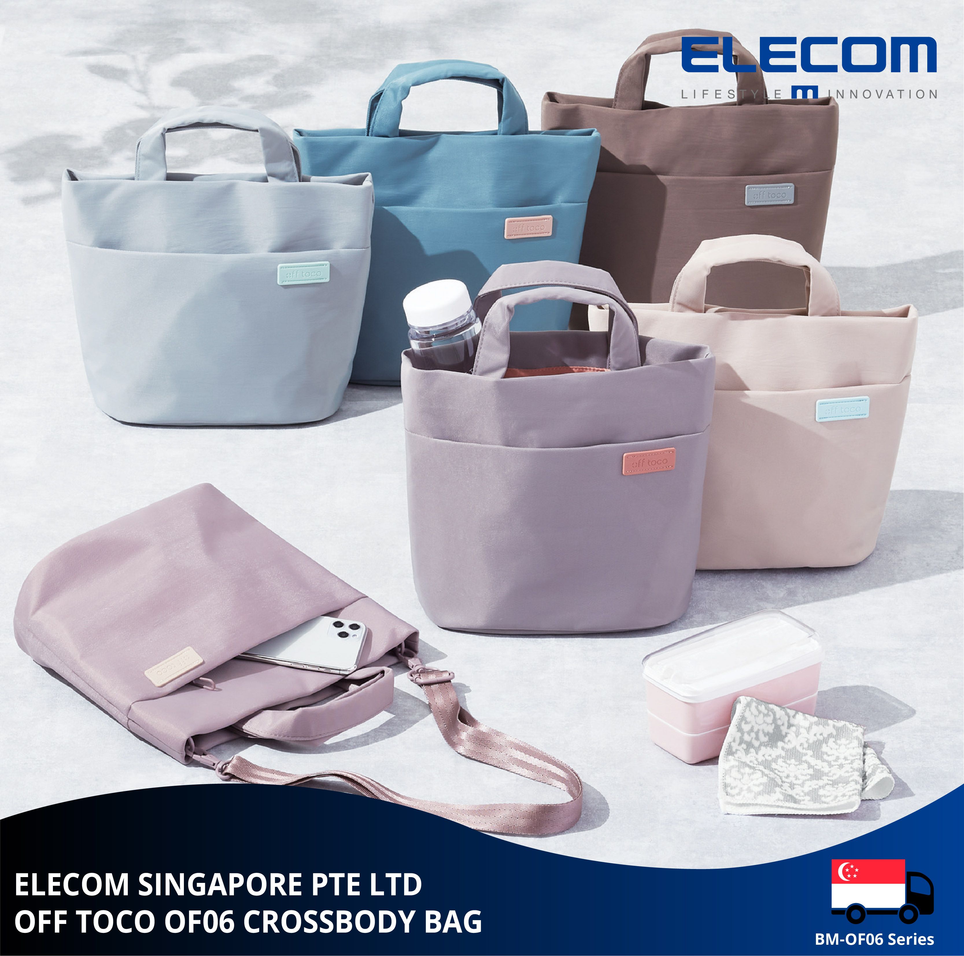 ELECOM OF06 Series Sling Bag/ Shoulder Bag/ Tote Bag/ Waterproof/ Crossbody/ Messenger Bag/ Travel/ Casual/ Hand-Carry Bag/ Women Bags/ Water Repellent Finish/ 6 Colors