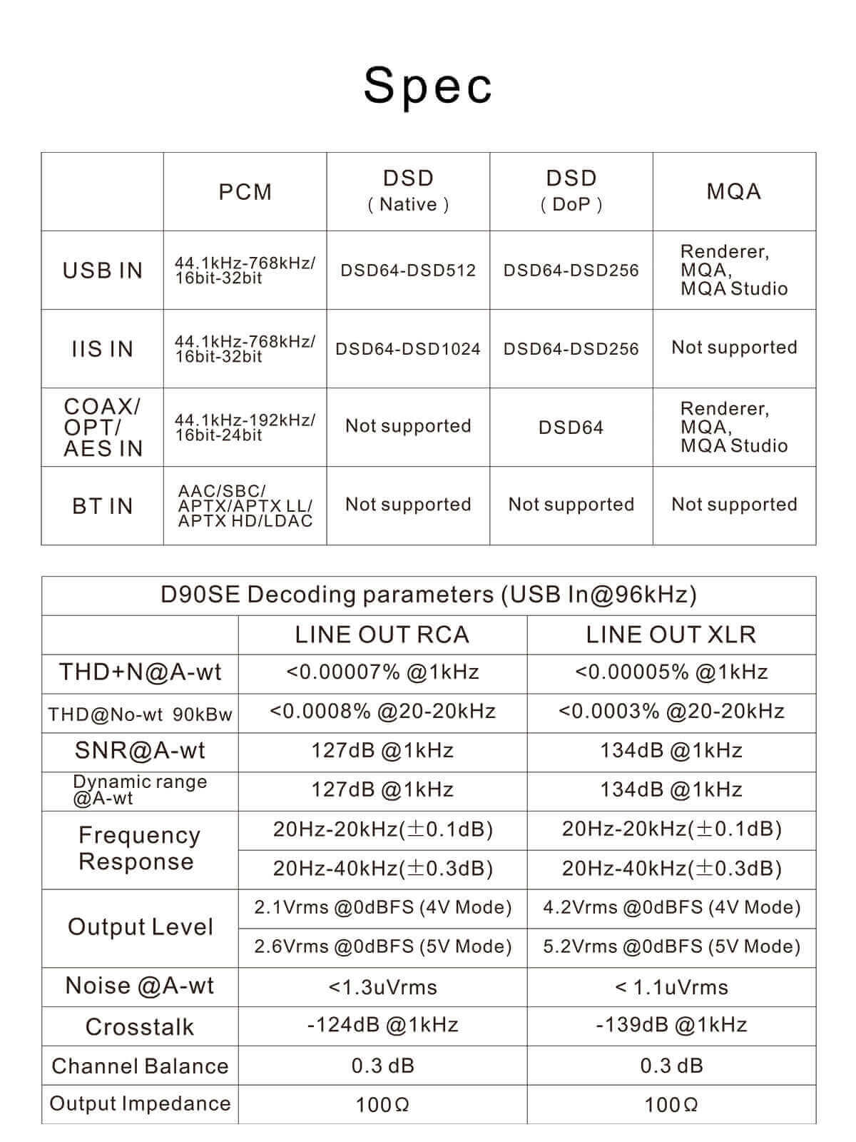 The USB input of the D90SE uses a 2nd generation XMOS XU2013 16-core chip. This chip supports high sampling rates, up to 32bit 768kHz PCM and DSD512, as well as MQA. This chip is associated with a custom Thesycon driver.