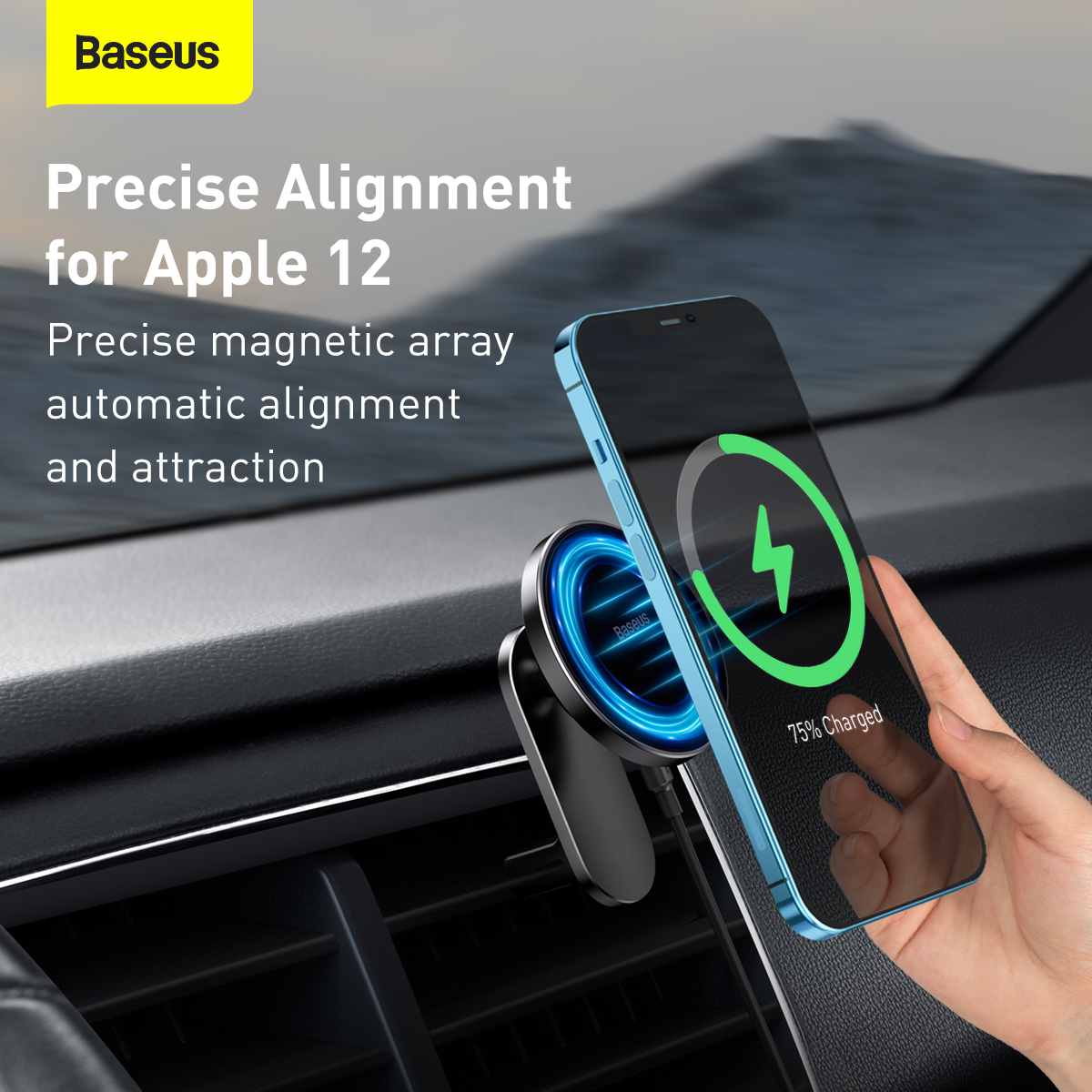 Baseus Big Energy Car Mount 15W Wireless Charger for iPhone 12 / 12 Pro / 12 Pro Max, 2 in 1 Magnetic Mobile Phone Holder for Dashboard or Aircon Air Vent Outlet