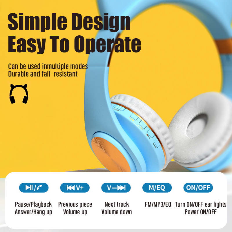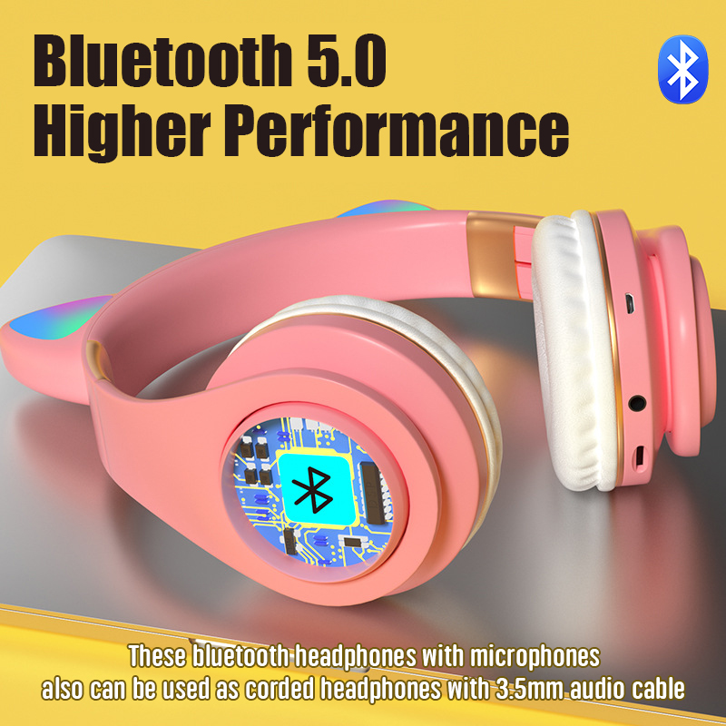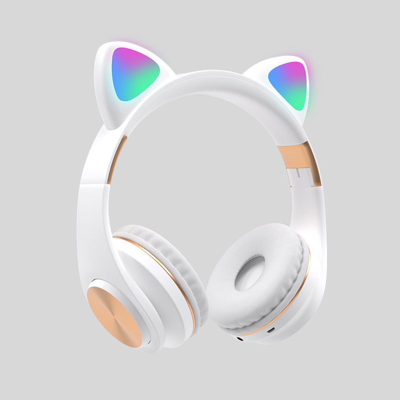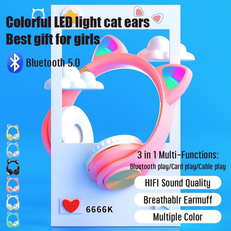New head-mounted cat ear colorful LED flash cat paw gift box head-mounted Bluetooth headset can be stretched