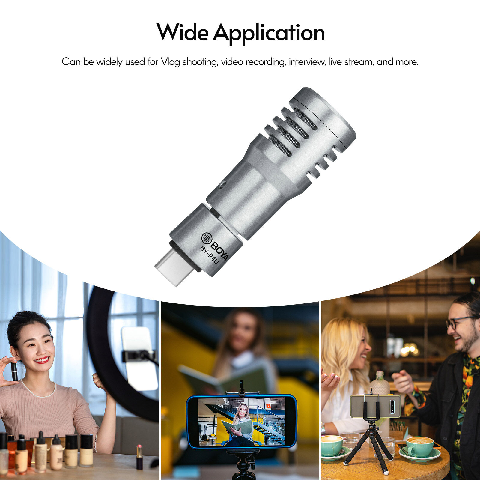 BOYA BY-P4U Omnidirectional Condenser Microphone Mini Mic with Windscreen Type-C Port Replacement for Android Smartphone Tablets Vlog Shooting Live Stream Interview