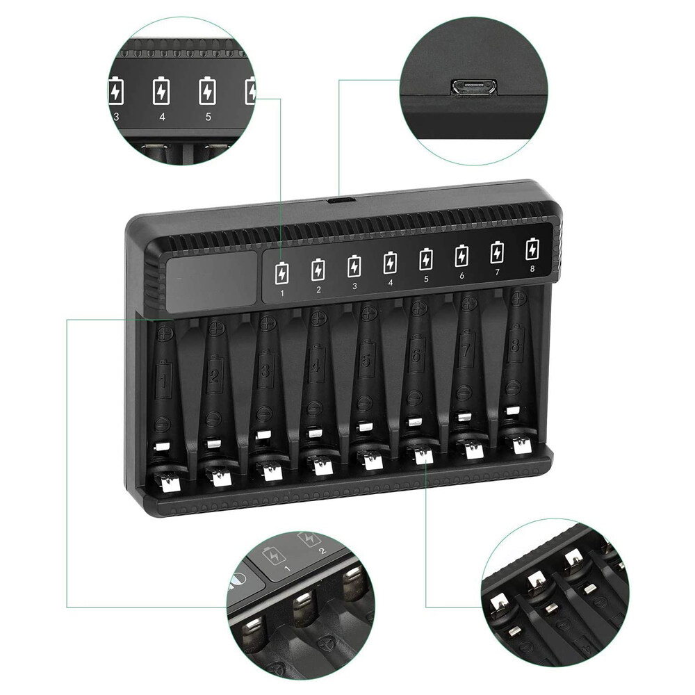 8-slot LED Display Smart Battery Charger Suitable for Aa/aaa Ni-MH Rechargeable Batteries