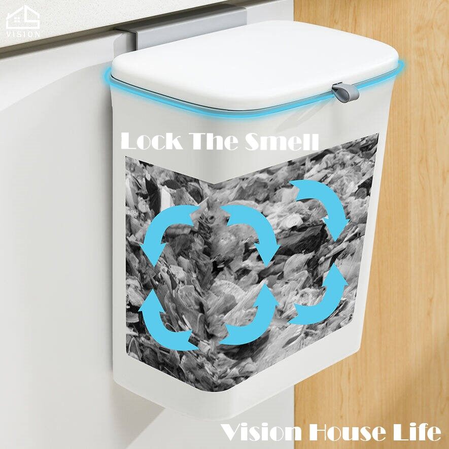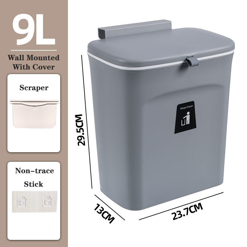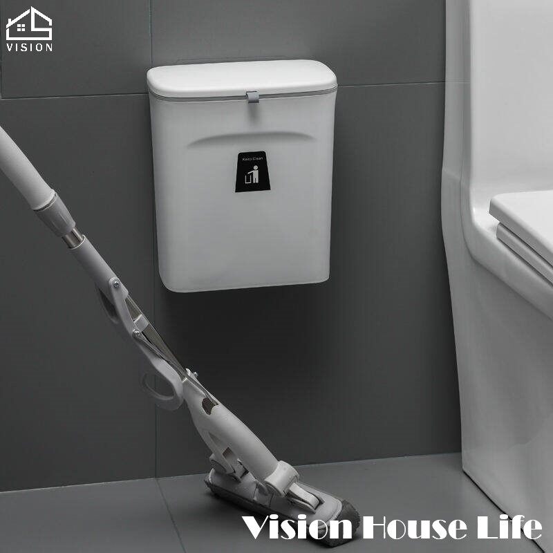 Vision 9L Wall Mounted Trash Can Nordic Sliding Cover Dustbin Kitchen Garbage Can with Cover Large Capacity Trash Can Toilet Bedroom Living Room Creative Trash Can