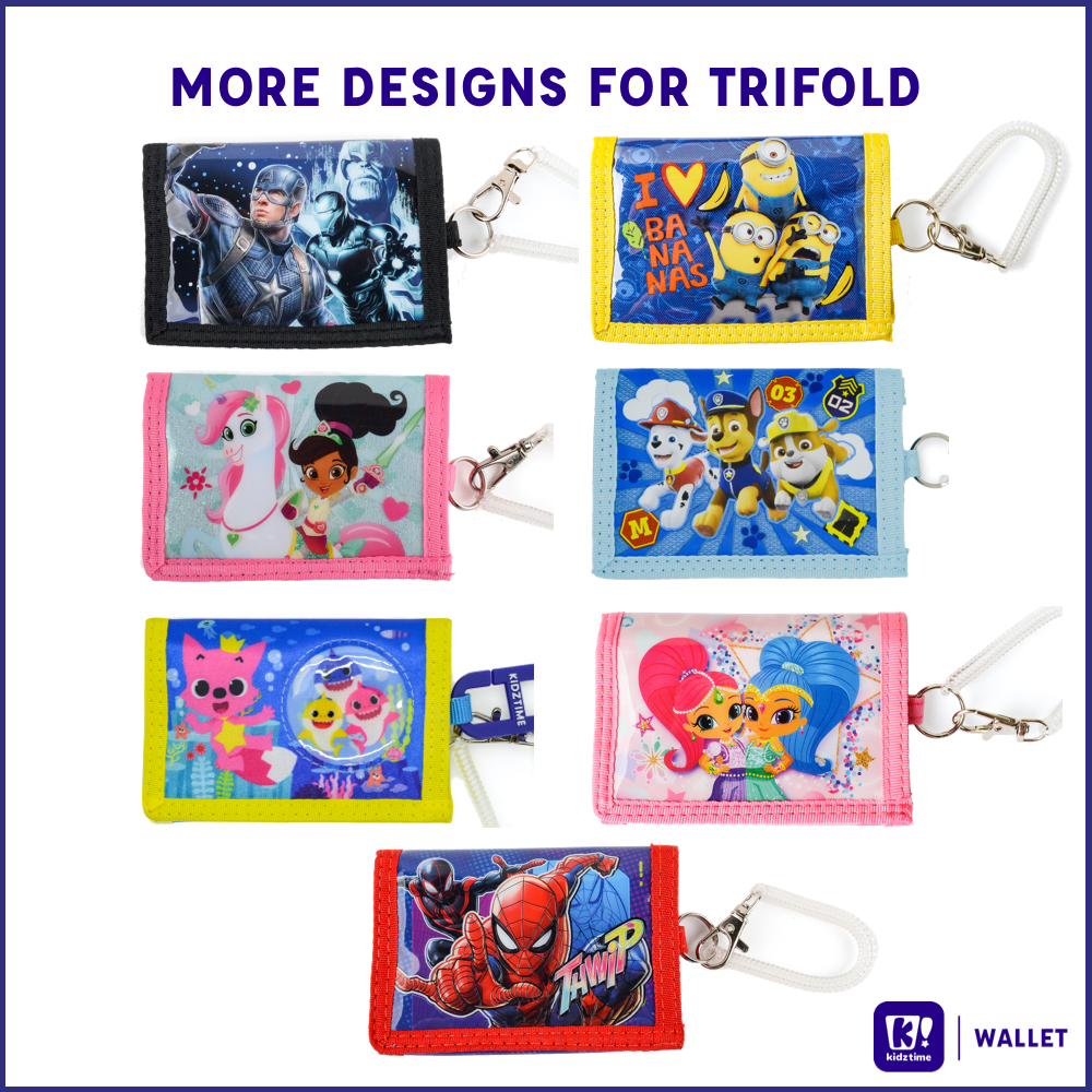 Kidztime Wallet Bifold/Trifold With Coin Compartment Elastic Spring Coil Keychain