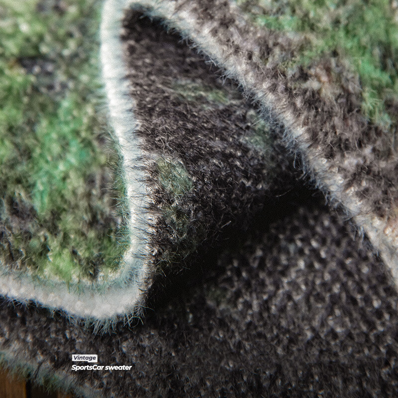 Maden brand Workwear style men hip-hop American 1980S retro sports car print crew neck sweater thick draped knit men academic sweater