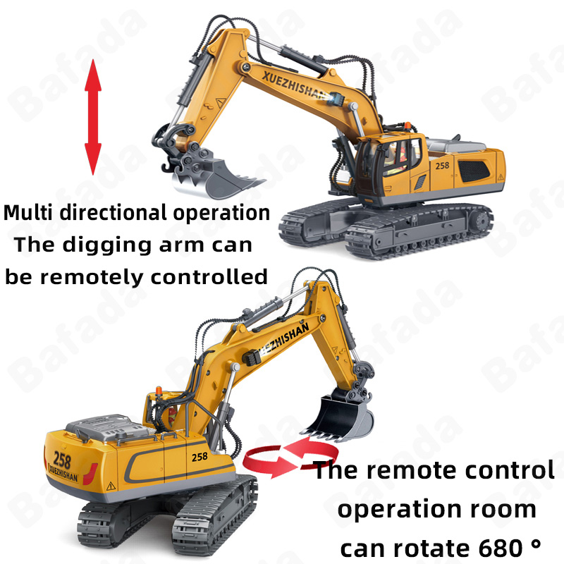 Bafada 1:20 High Simulation Remote Control Excavator RC Crawler Tractor Toy,270° Rotating Truck RC Car,6 Channel Construction Vehicle with Flashing Lights