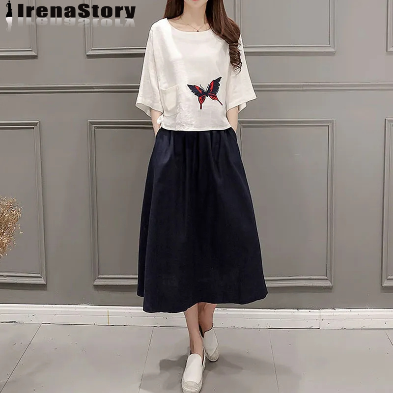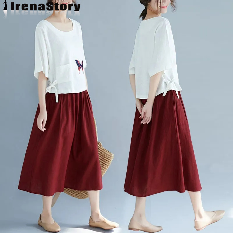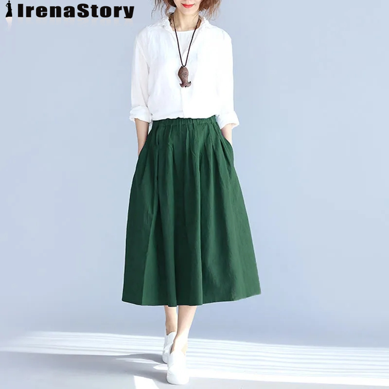 (S-4XL) IRENASTORY Korean Style Cotton Skirts for Women Plain Color Elastic Waist A-line Skirt Elastic Waist Plus Size Skirt