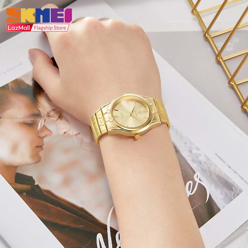 SKMEI Women Digital Watch Quartz watches Casual Fashion Dual Display Stainless Steel Waterproof Wrist Watch For Women Man Men L1023