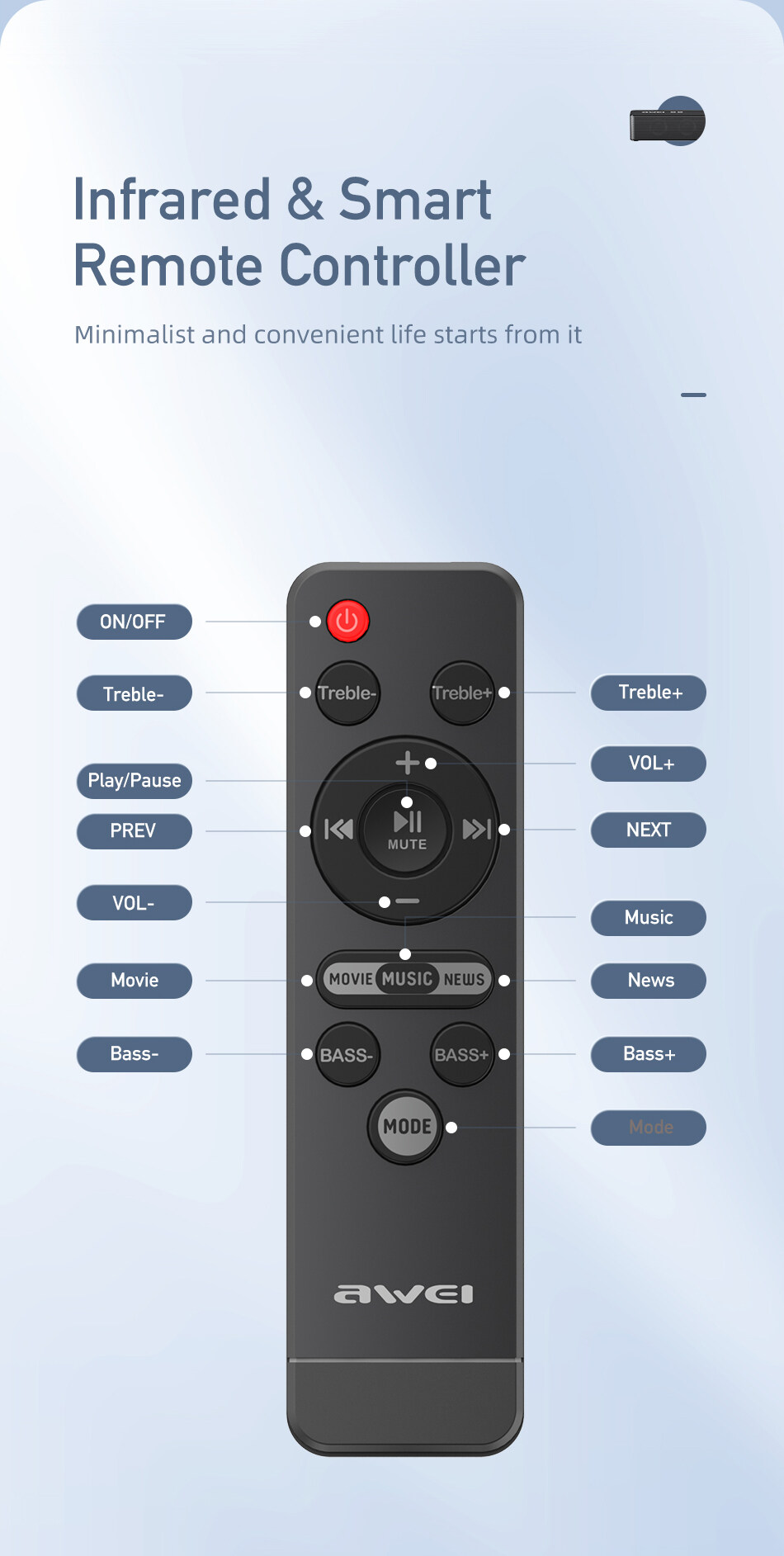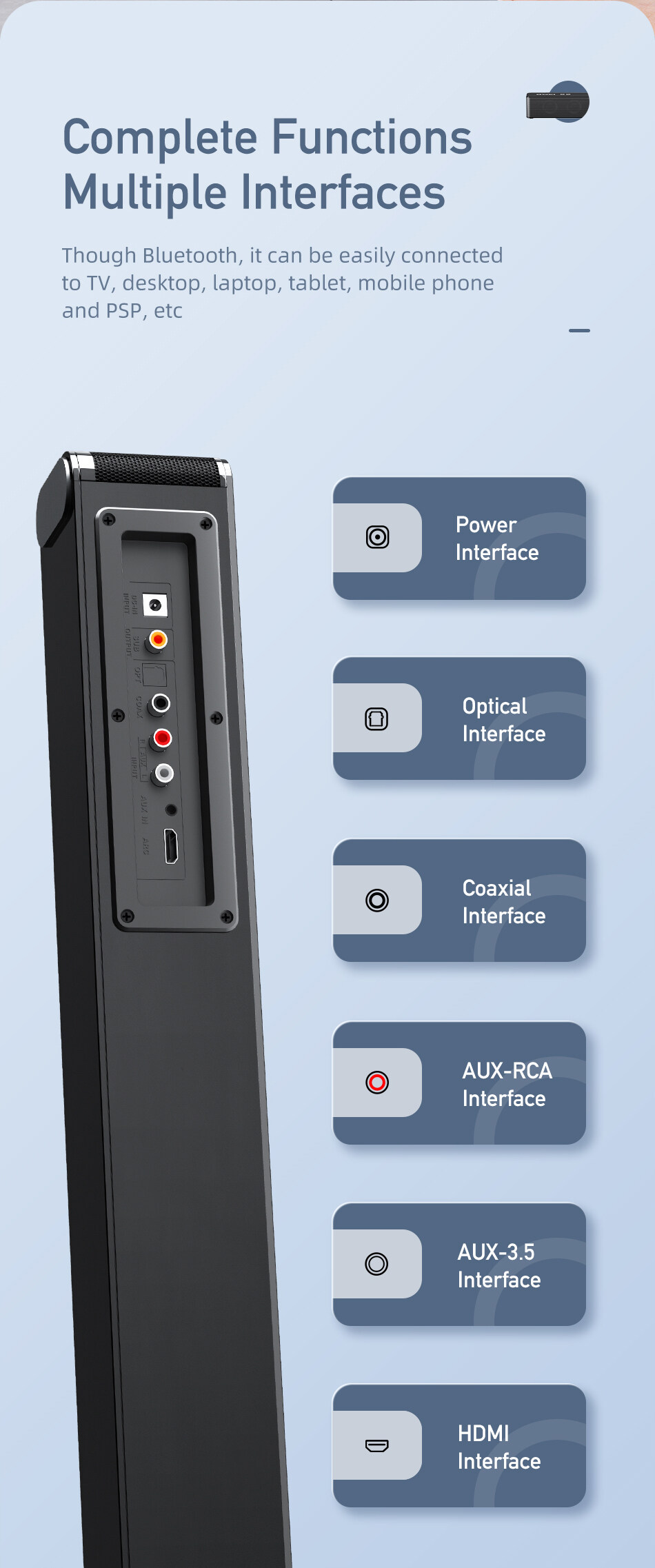 Awei Y998 TV Soundbar Speaker 33Inches Wireless Bluetooth Soundbar Home Theater With 8 Built-in Sound Units Support Bluetooth/Optical/SPDIF/AUX