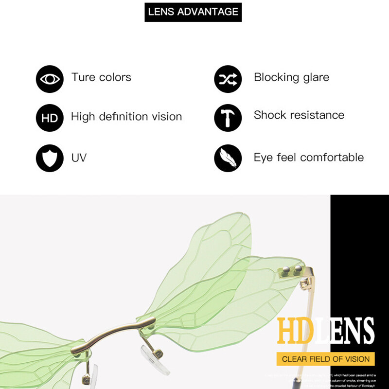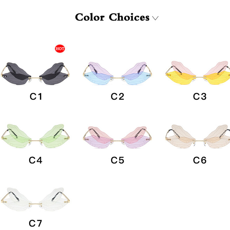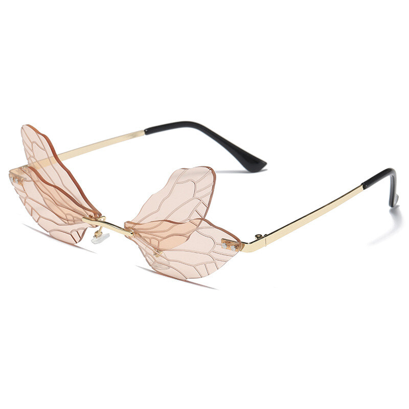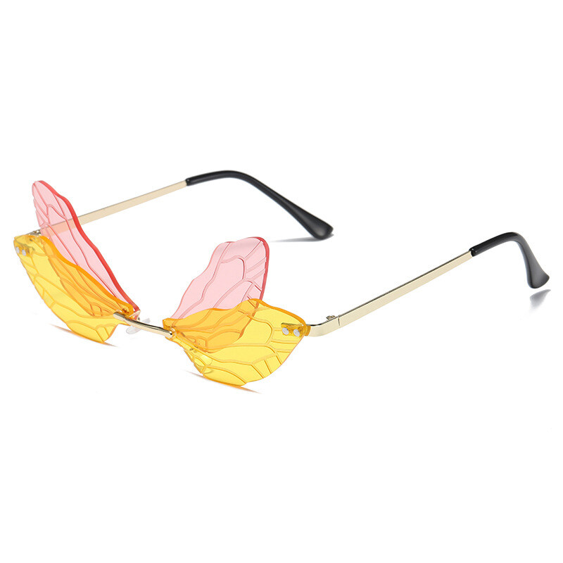 New Personality Frameless Cut Edge Sun glasses for Women European and American Style Funny Prom Shades for Women Ladies Dragonfly Wings Sun Glasses PTQ