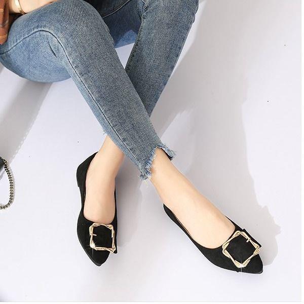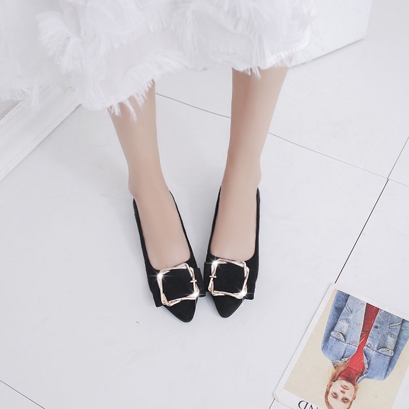 ♞▽ Net red same summer women's shoes shallow mouth flat bottom pea shoes cover feet soft bottom lazy sh网红同款夏季女鞋浅口平底豆豆鞋套脚软底懒人鞋仙女尖头单鞋百搭2021100117lang2051.sg