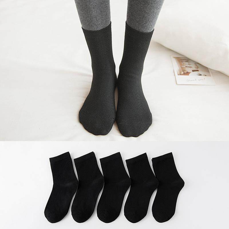 Yingbao 5 pair Womens Cotton Socks High Ankle Casual Sock for Ladies Solid Color Black Grey White