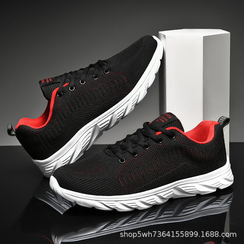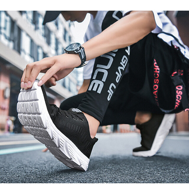 Mesh Surface Shoes Men's Summer Breathable Thin Mesh Surface Hollowed Large Mesh Men's Shoes Casual Running Black Flyknit Sneaker