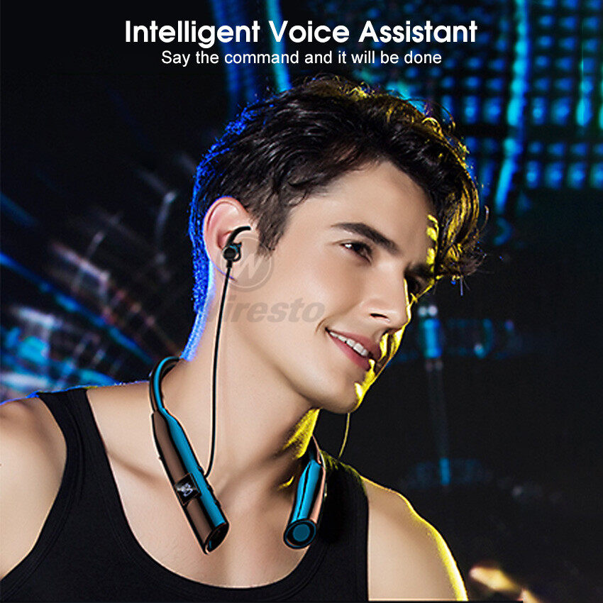 Wiresto TWS Earphone Bluetooth 5.2 In-Ear Headphones Neck Hanging Earbuds IPX5 Waterproof Sport Earphone HIFI Stereo Headset LED Power Display Earbuds Support TF Card Remote Photo With Flashlight