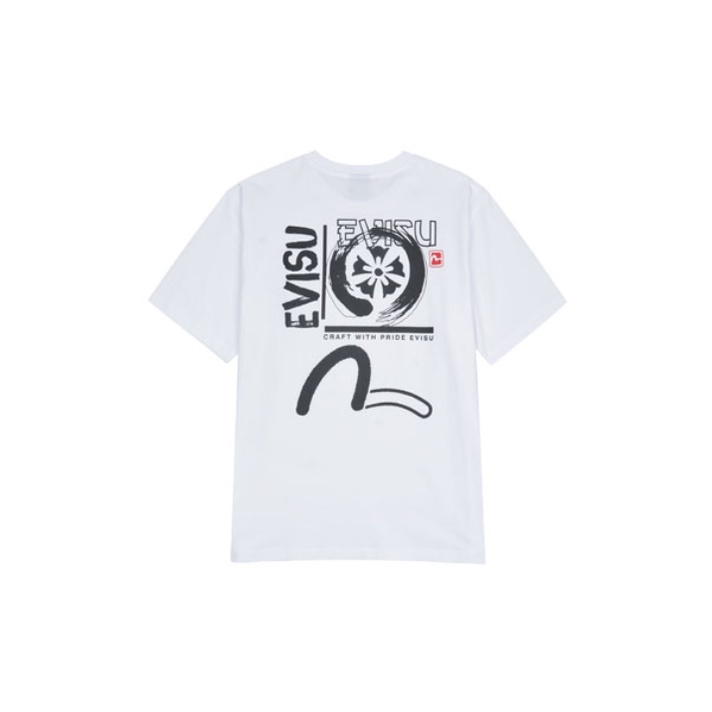 [EVISU KOREA] 100% Authentic Unisex Backboard multiple logo loose fit Short-sleeve T-shirt