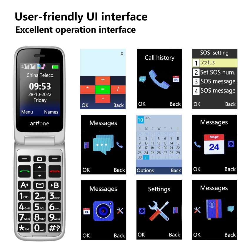 INOVAGEN 4G LTE Senior Flip Phone IN107,Speed Dial,Charging Dock,SOS Key,English and Chinese,2.4inch Color Dual LCD Display,Big Button,Big Font,Unlocked Senior Citizen Backup Phone