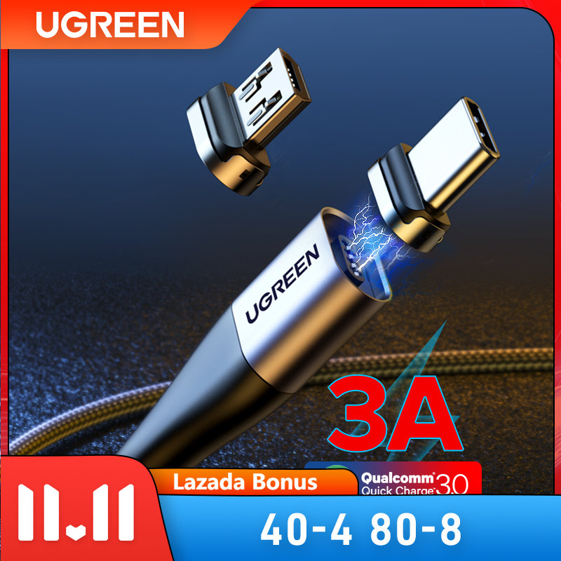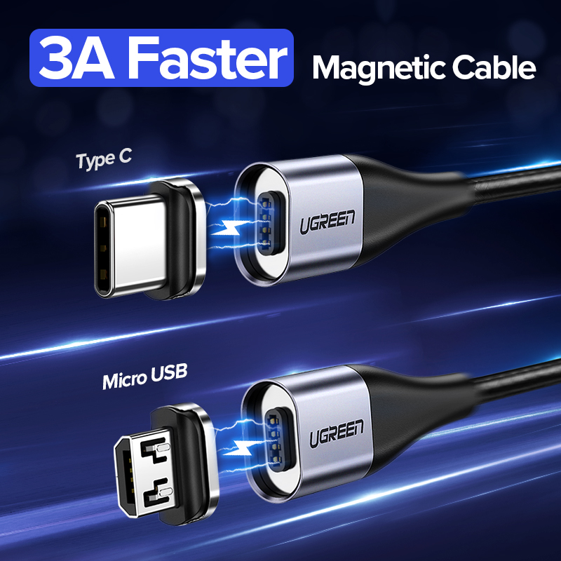 UGREEN 1Meter QC3.0 Fast Charge Magnetic USB Cable Fast Micro USB Type C Cable Magnetic Charge Cable for OPPO VIVO Xiaomi LG Huawei Magnet Charger Micro USB Cable