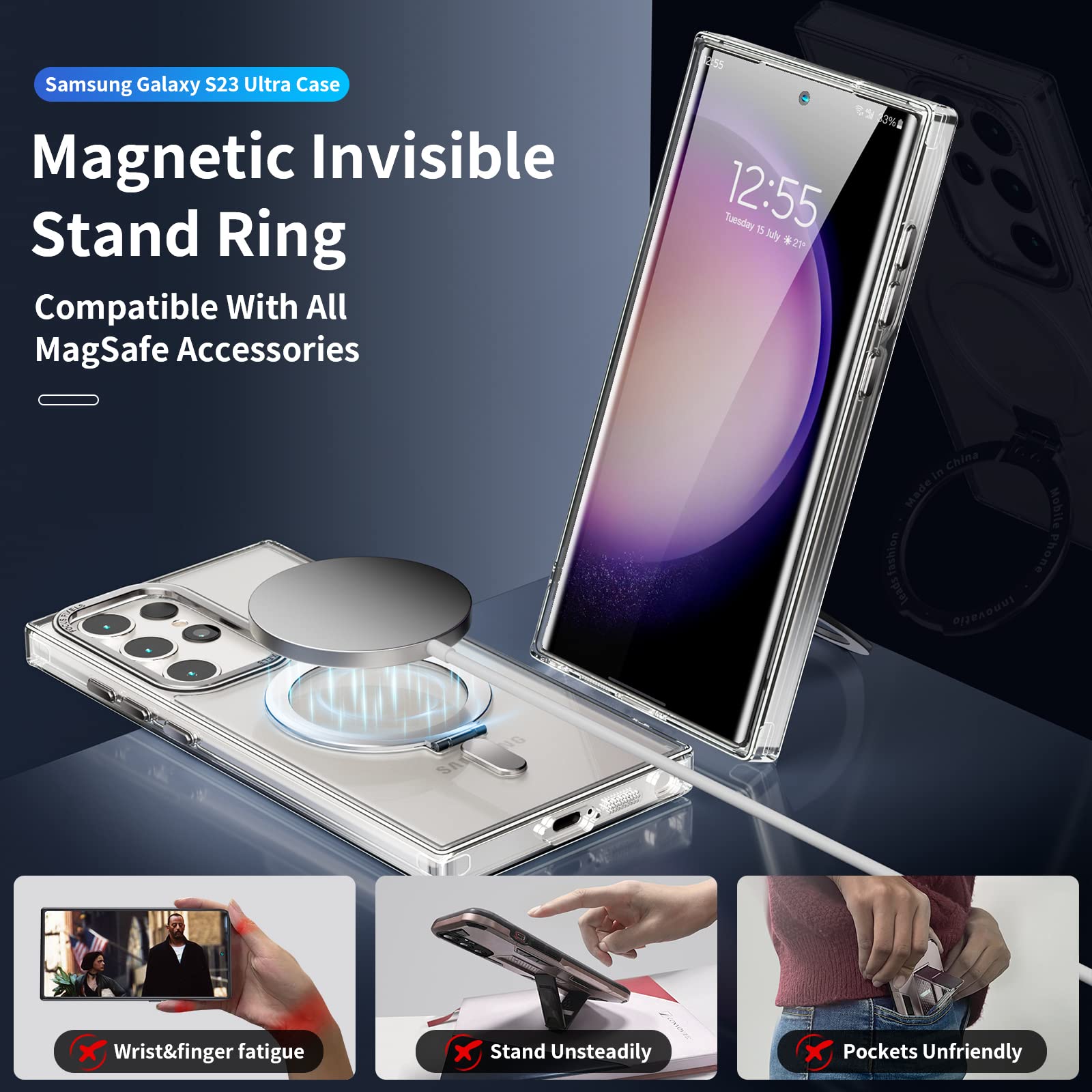 ✔️Magnetic ring phone holder-hidden magnetic holder, multi-angle adjustment, more practical