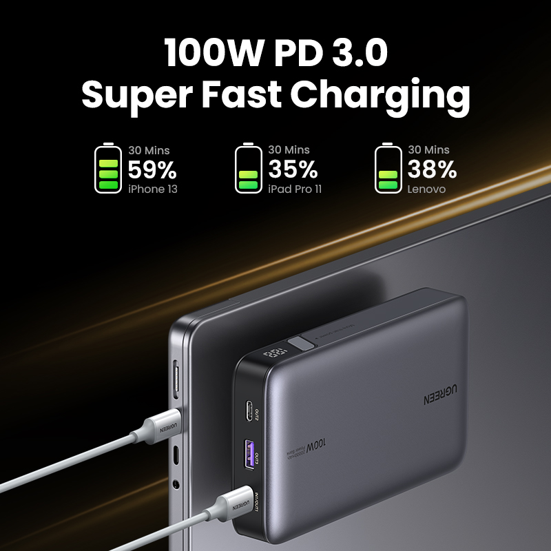 UGREEN 20000mAh Laptop Power Bank PD 100W Fast Charging for Dell Lenovo MacBook Pro/MacBook Air M3 M2 M1 iPad Air M2 13" 2024 iPhone 16 15 14 Pro Max Samsung S24 Ultra Z Fold5 M14 Z Flip5 A35 A55 for