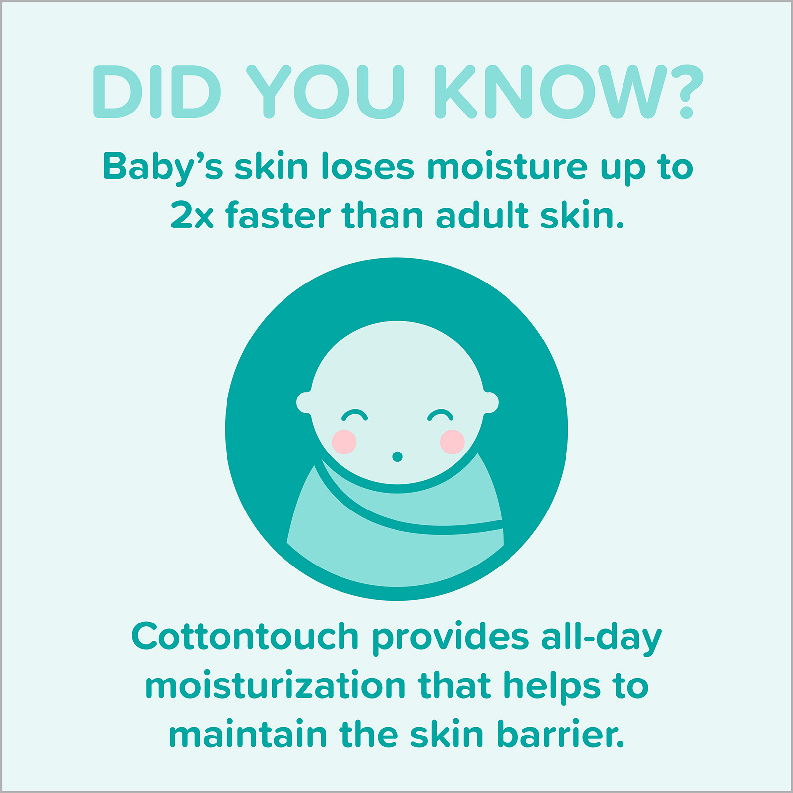 Unique water-based lotion blended with natural cotton so its gentle for newborn's sensitive skin