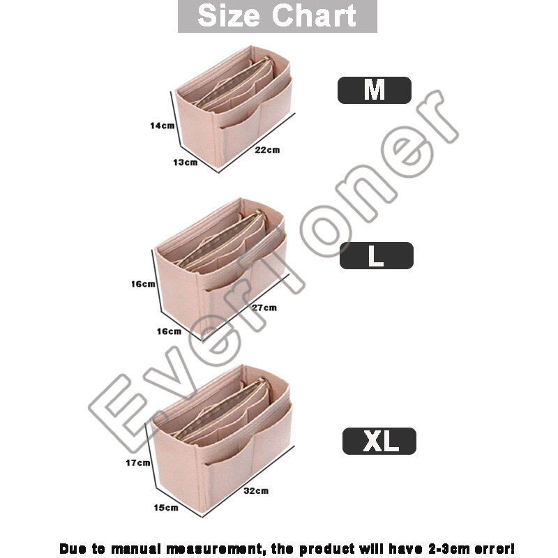 SIZE OF BAG ORGANIZER: Medium: 22*13*14cm Fits Speedy 30 Perfectly. Large: 27*16*16cm Fits LV Speedy 35 and LV Neverfull MM Perfectly. X-Large:32*17*15cm fits LV Speedy 40 and LV Neverfull GM Perfectly. Portable and Compact Purse Perfectly For any Brand, Such As LV, Longchamp Le Pliage Tote, MK, LV Petit Noe, Gucci, etc.