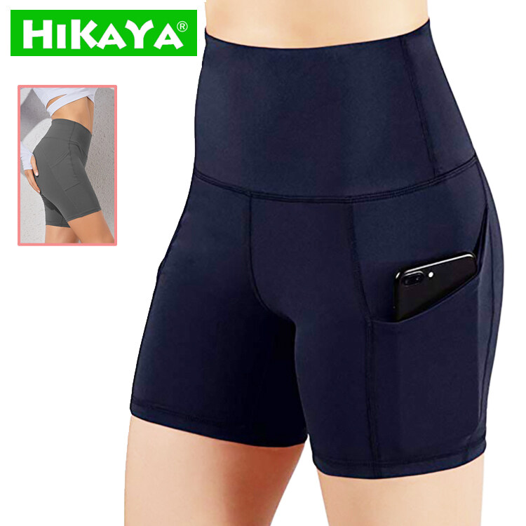 HIKAYA Women Sports short, High waist yoga pants, running compression shorts with side pockets