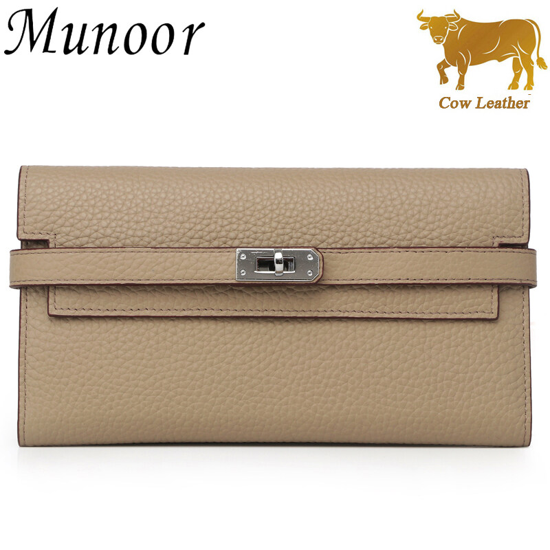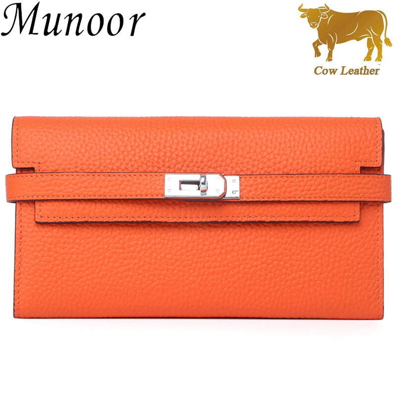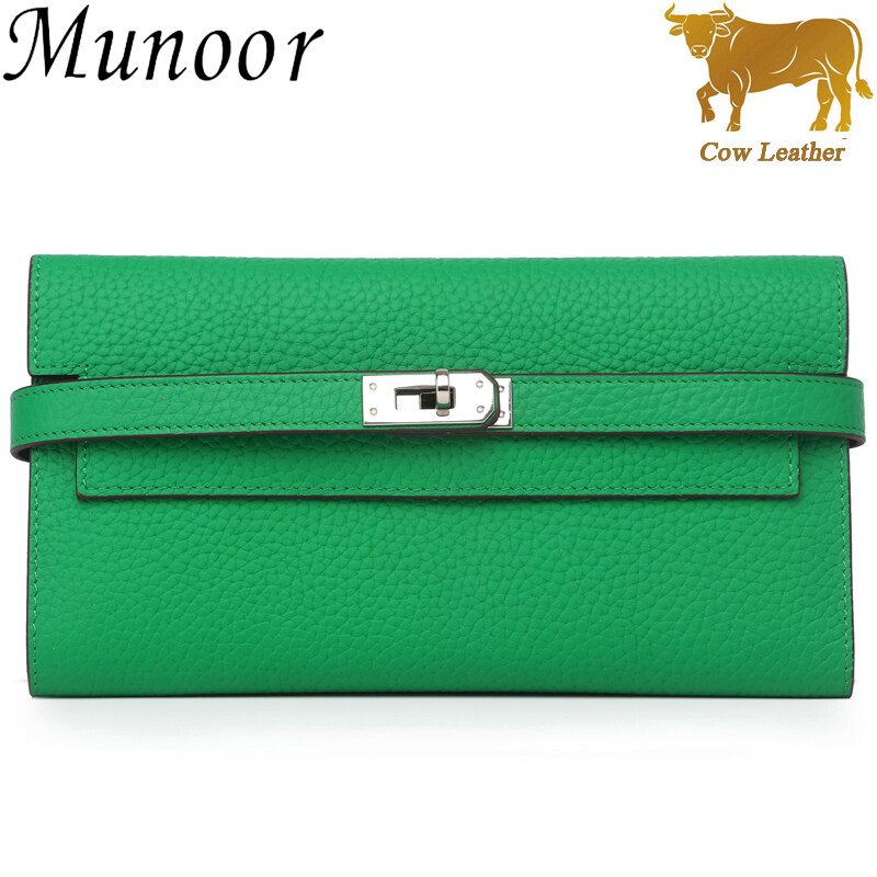Munoor High Quality Italian Imported 100% Genuine Cow Leather Women Long Clutch Wallet Woman Purse