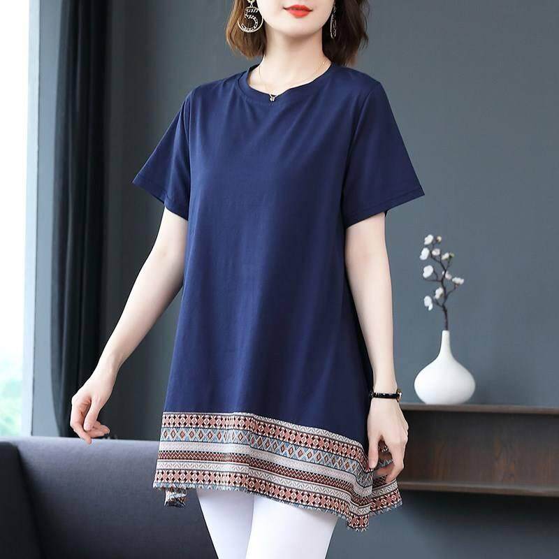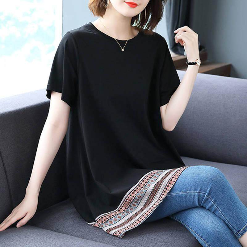 Plus size Women's Summer Short Sleeve Korean Slim Mid-length Top T-Shirt