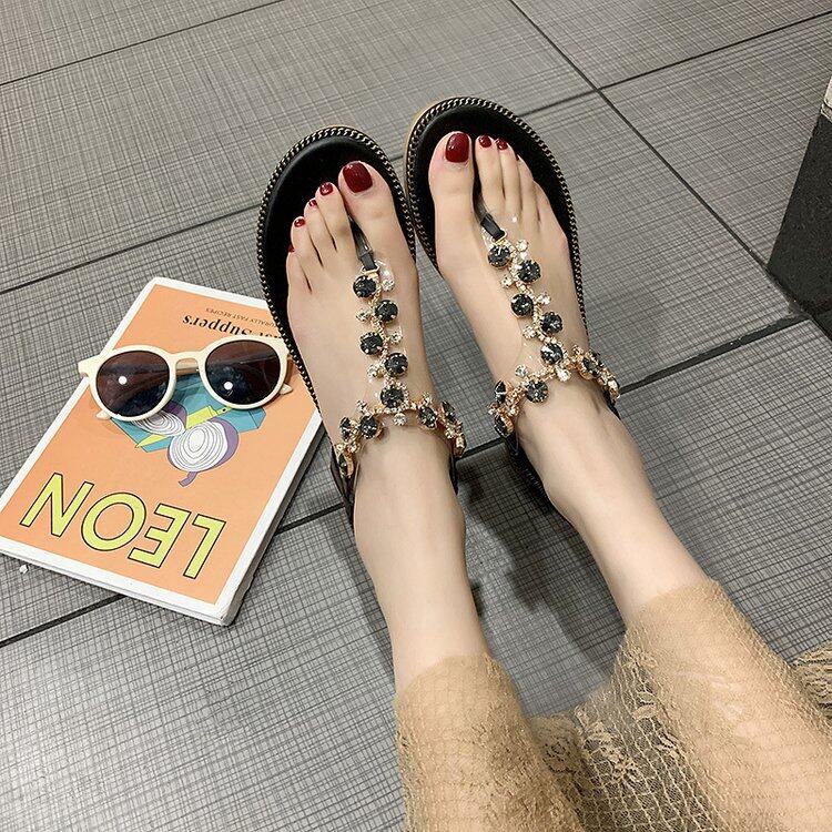 Women 's Sandals Flat Heel Split Toe Diamond Ankle Versatile Comfortable Herringbone