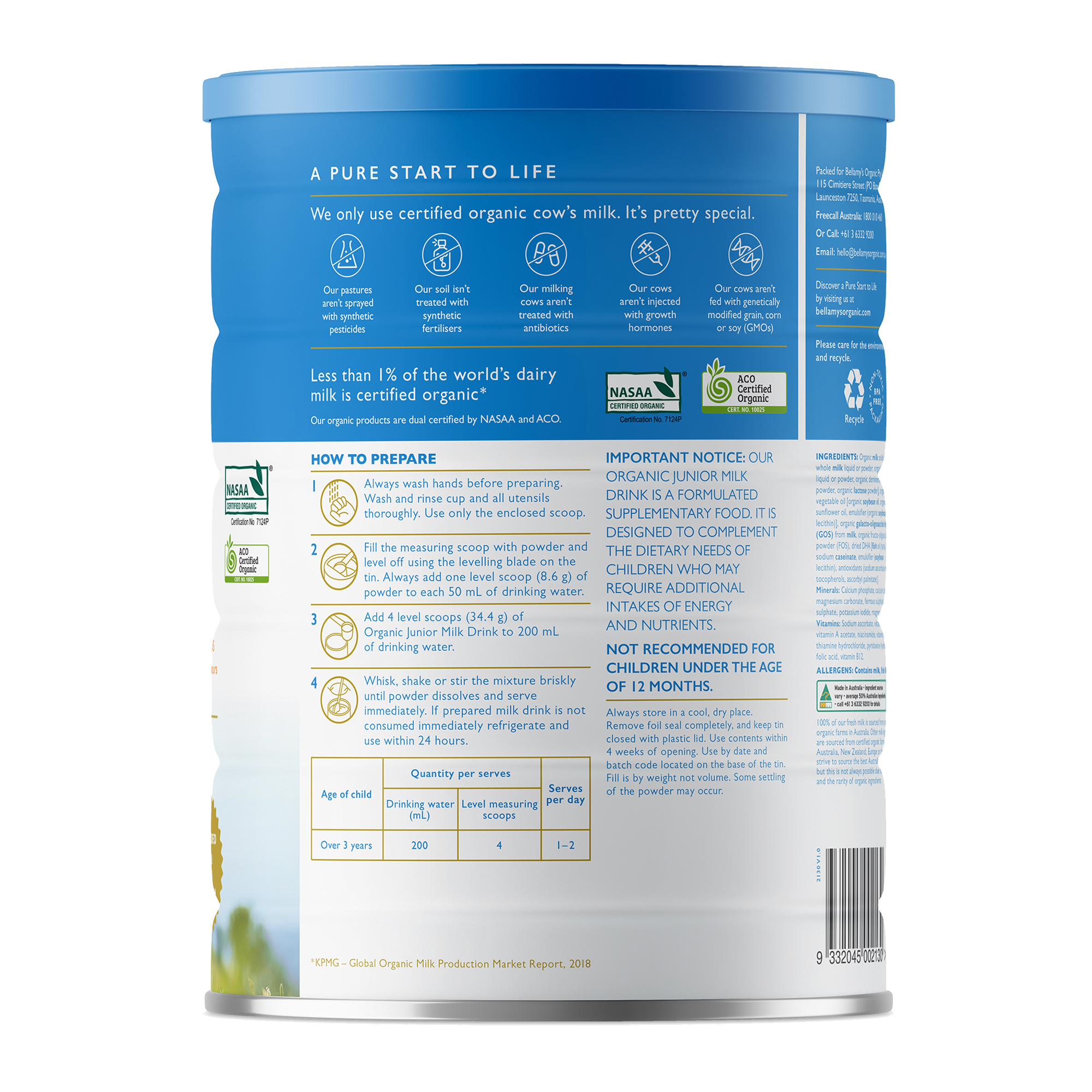 Bellamy's Organic Step 4 Junior Milk Drink (3+ years) 900g x 6