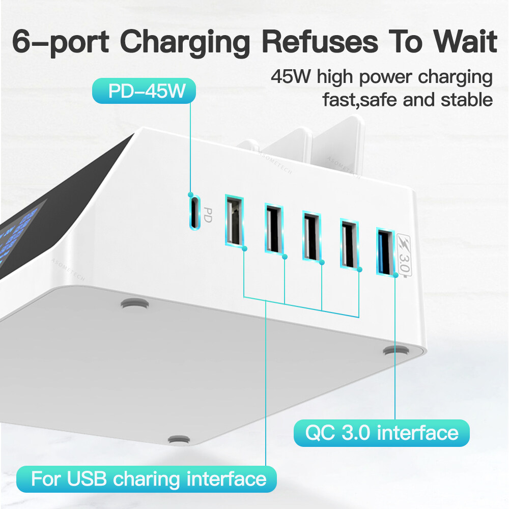 TOPZERO 100W Multiple USB Charger 6 Ports Fast Charge Docking Station Hub with Quick Charge 3.0 USB Port Type C PD Port Charging Adapter Compatible with iPhone Cell Phone iPad Tablet Laptop Devices