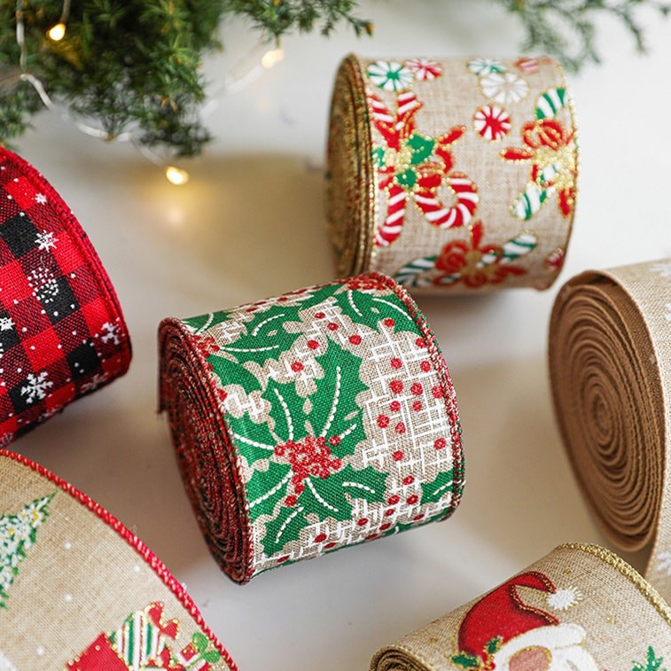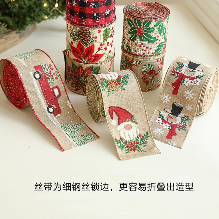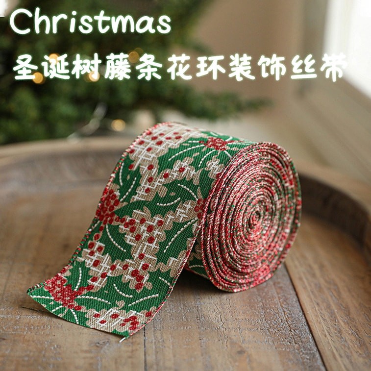 New Christmas Diy Handmade Decorative Ribbon American Fabric Christmas Ribbon 6.3cm Khaki Green Flower/2 Meters